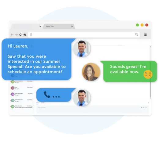 Reach your customers wherever they are with text messaging. Request reviews, connect with website visitors, collect payments, respond to Facebook & Google Messages, and market to customers and leads all from your app.